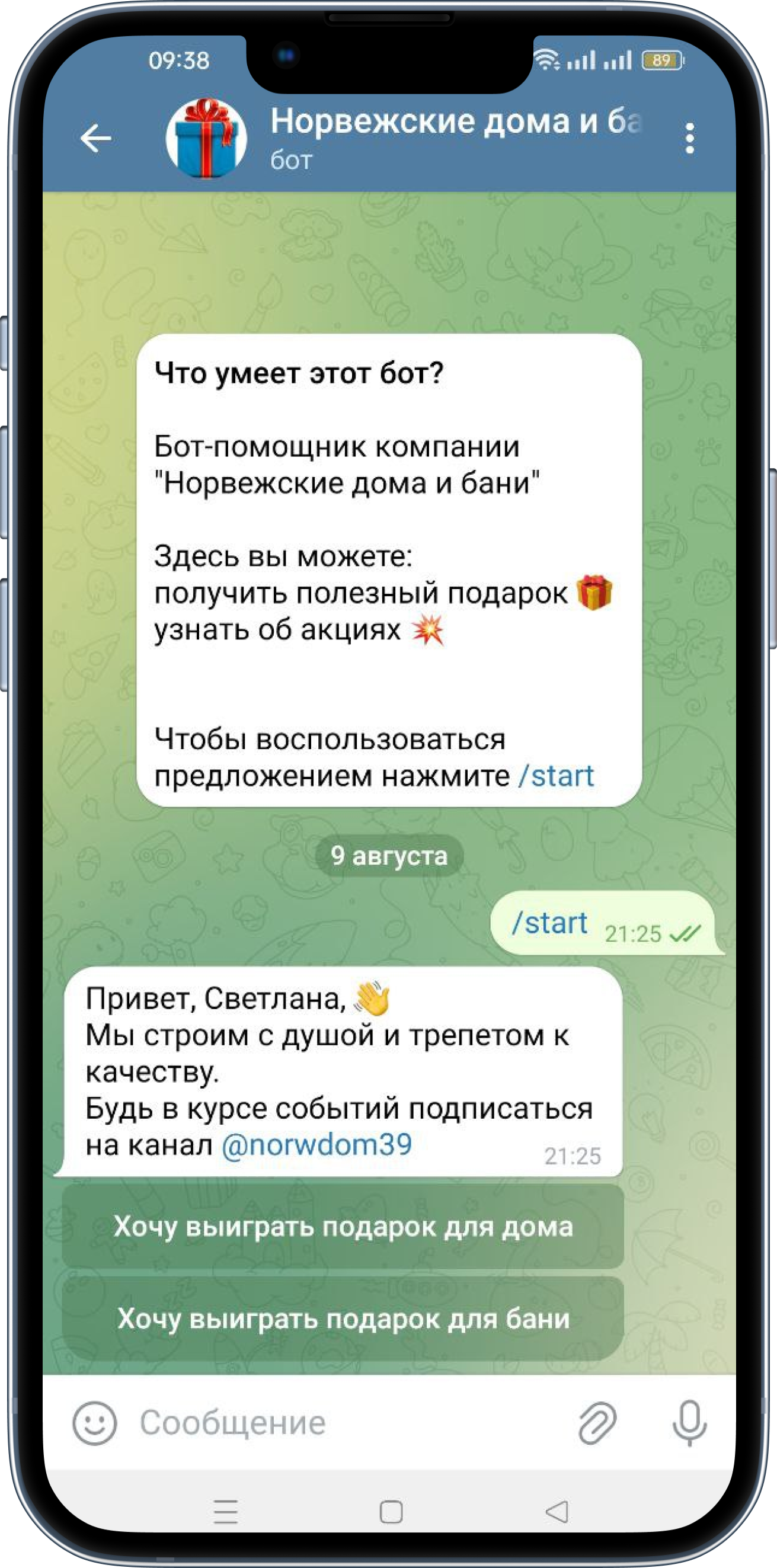Задача:Привести новых клиентов в салон с помощью выдачи сертификата на бесплатную процедуру и собрать базу для дальнейшего взаимодействияРешение:Разработан чат-бот в котором пользователь отвечает на несколько вопросов и получает возможность выбрать 1 из 4 процедур и получить сертификат на бесплатное посещение. Настроено уведомление в группу, где менеджеры видят, что пользователь зашел в бот и оставил контакты для записи на процедуру.Результат:Новые клиенты и взаимодействие с потенциальными клиентами, с помощью push-уведомлений в чат-боте, которые напоминают о салоне.